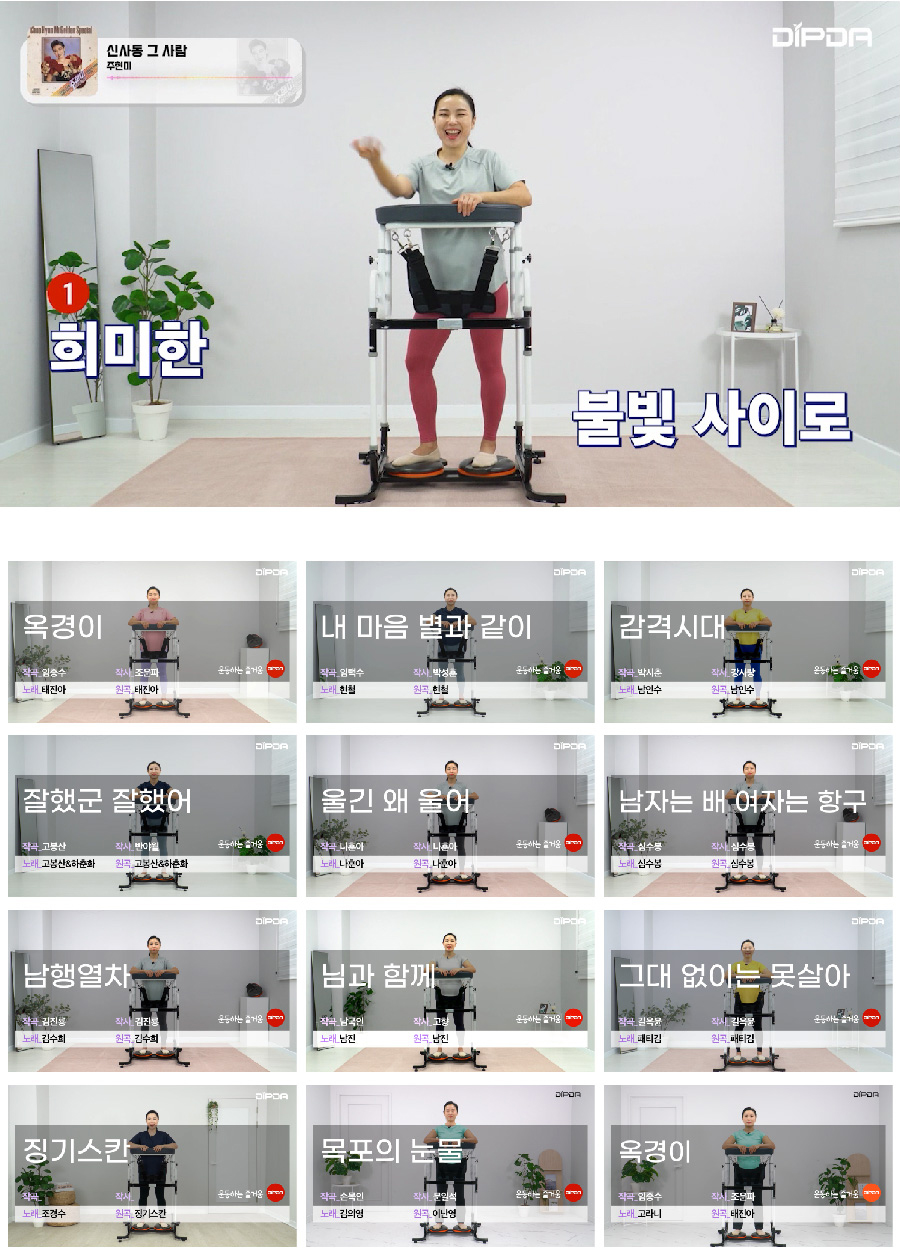 시니어 복합형 딥다 0 13489 2019.08.26 06:12 딥다시니어 복합형 관절 운동에 도움을 주는 보행재활 프로그램과춤추고 노래하며 운동하는 댄스 노래방을 한 번에! 제품명 : 딥다GX시니어 복합형모델명 : GXD-191딥다 키오스크제품크기 : 520 x 550 x 1560 (mm)제품무게 : 31kg안전인증 : KC 인증 정격전압 : AC220V 60Hz소비전력 : 5A재질 : Steel, ABS제조국 : KOREA제조원 : REDESIGN.Co.,LTD.